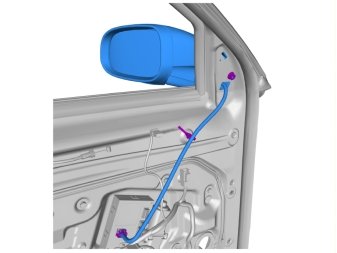 If moisture comes from the external rear-view mirror via the wiring harness in to driver door/passenger door module (DDM/PDM), the wiring harness from the external rear-view mirror shall be replaced. If oxidation in the connector also is detected for driver door/passenger door (DDM/PDM), the module shall be replaced.