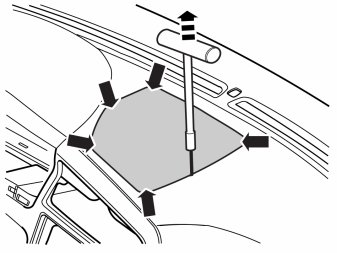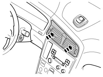 - Insert special tool, 999-5919-46 in the joint between the loudspeaker grille and the dashboard approximately as illustrated, until it engages.