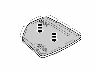 - Carefully push on the loudspeaker grille with the cradle on the loudspeaker console. File out the holes for the stud bolts if necessary.