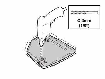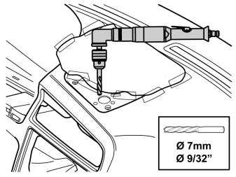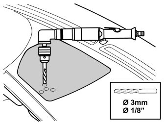 - Drill at right angles through the holes in the speaker grille and through the speaker bracket using a -3 mm (1/8") drill bit.