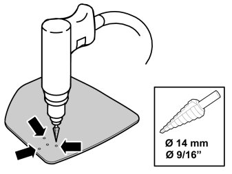 - Drill the three holes for the cradle's feet using a step drill -14 mm (9/16").