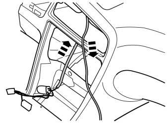 - Take the long cable harness from the kit, pull up the end with the small connector into the hole where the radio unit was located and out through the hole for the ventilation nozzles.