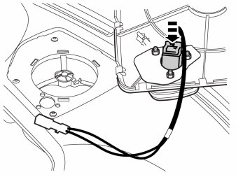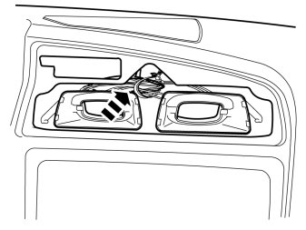 - Insert the connector into the large hole in the loudspeaker bracket and route the cable forward.