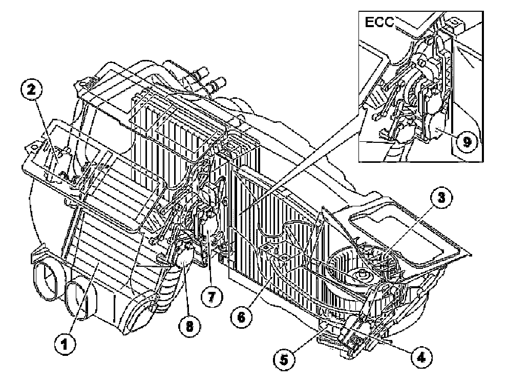 9. Damper motor module (DMM), defroster (ECC).