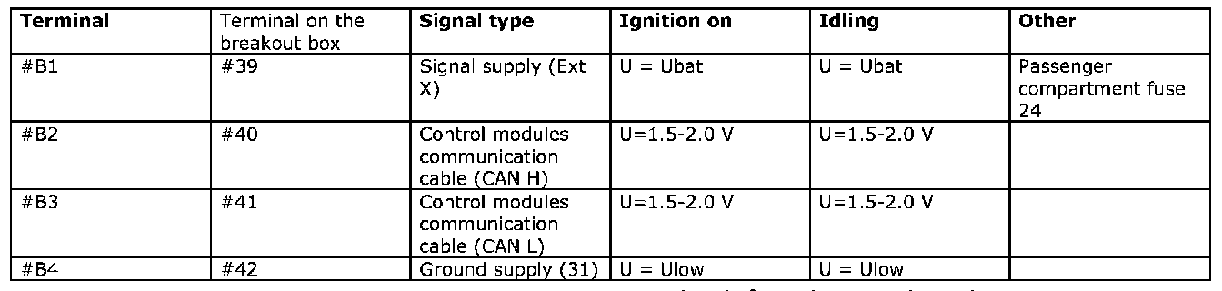 Terminals B1-B4 correspond to terminals 39-42 on the breakout box.