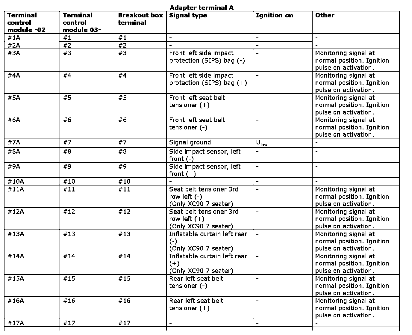 Signal Specification, Supplemental Restraint System Module (SRS)