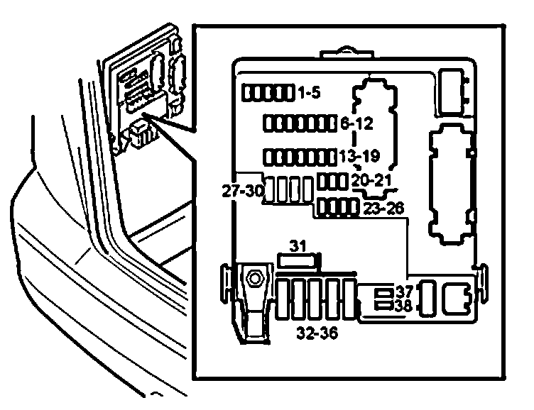 HINT: The rear panel in the side panel of the cargo compartment can be removed to change fuses.