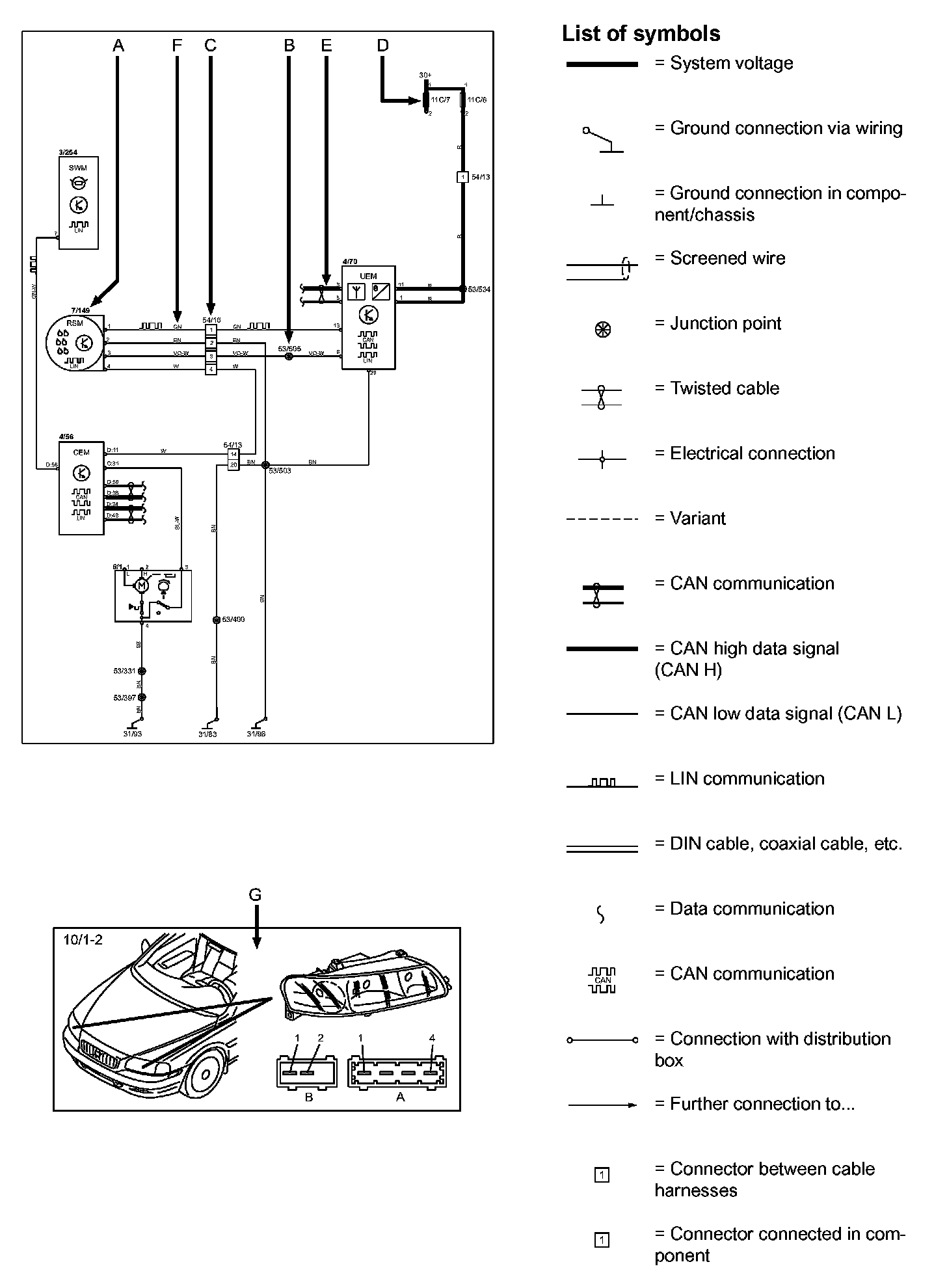 Today's cars contain CAN and LIN networks that transfer information. Connections to these networks are not shown in their entirety in the respective wiring diagram. Complete information on CAN and LIN communication is found in the Information Bus. Electrical Diagrams