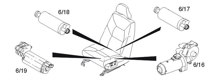 Each seat motor has a Hall sensor which detects the present position of the seat. When one of the stepper motors for the seat is run, the control module counts the number of pulses from the Hall sensor. The Hall sensor counts the number of revolutions made by the motor by detecting a magnet on the motor shaft. This creates a pulse for each revolution of the motor.
