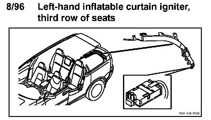 8/96 Left-Hand Inflatable Curtain Igniter, Third Row Of Seats: