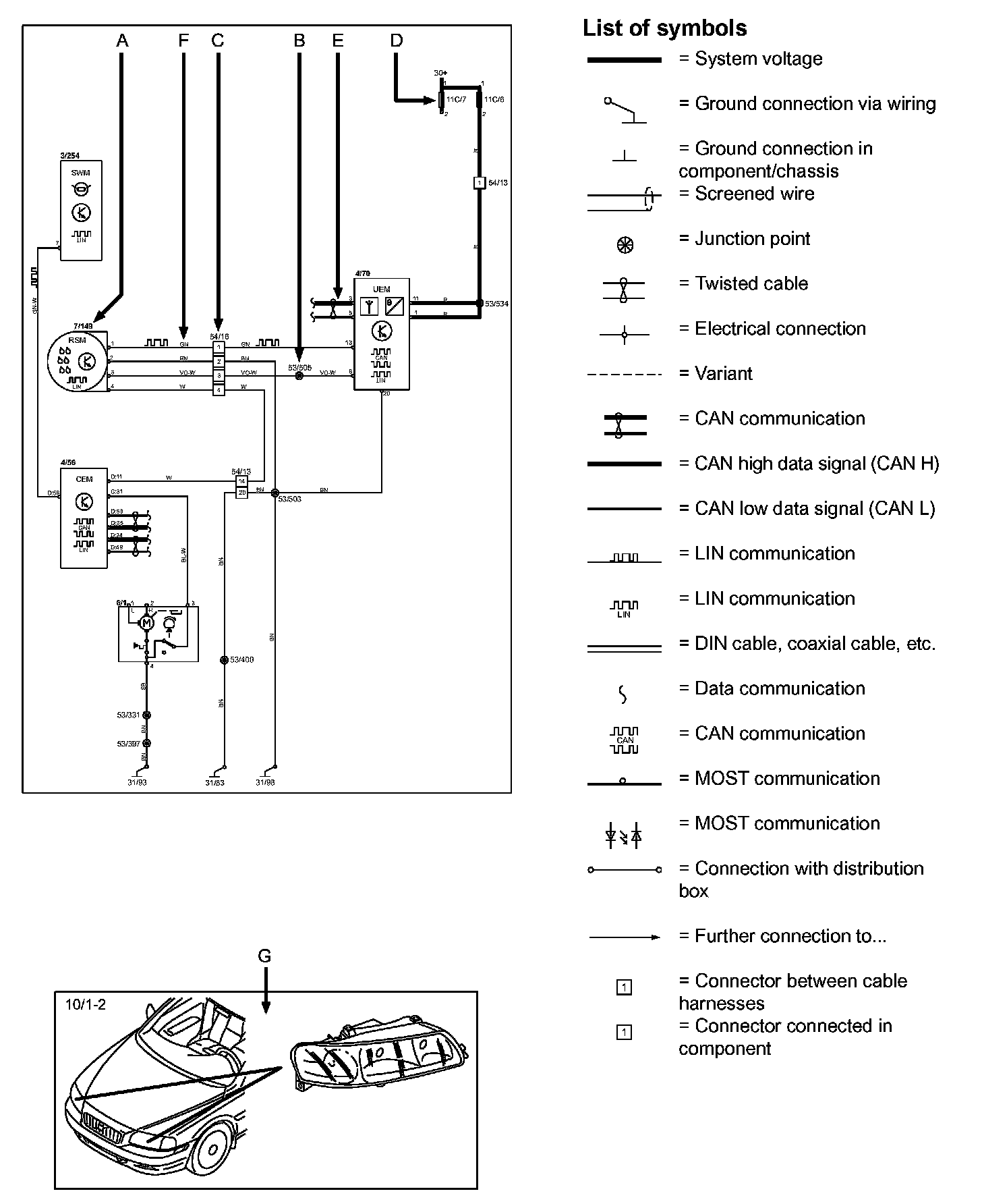 Today's cars are equipped with CAN, LIN & MOST networks that transmit information. Connections to these networks are shown in their entirety on the respective wiring diagram. Complete information on Data communication can be found in the "Information Bus". Electrical Diagrams