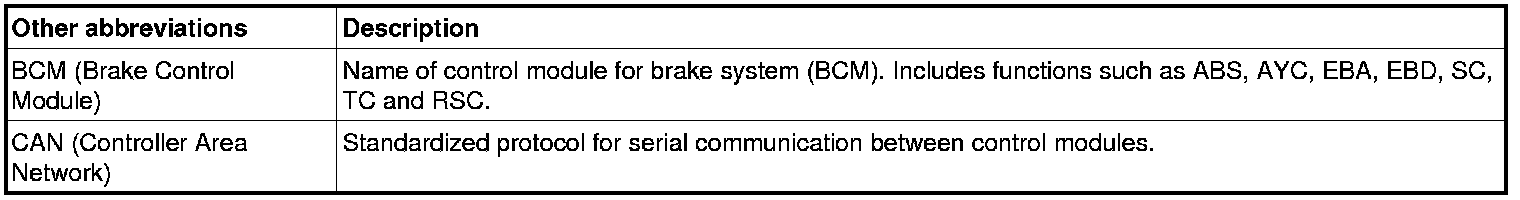 Brake system, abbreviations