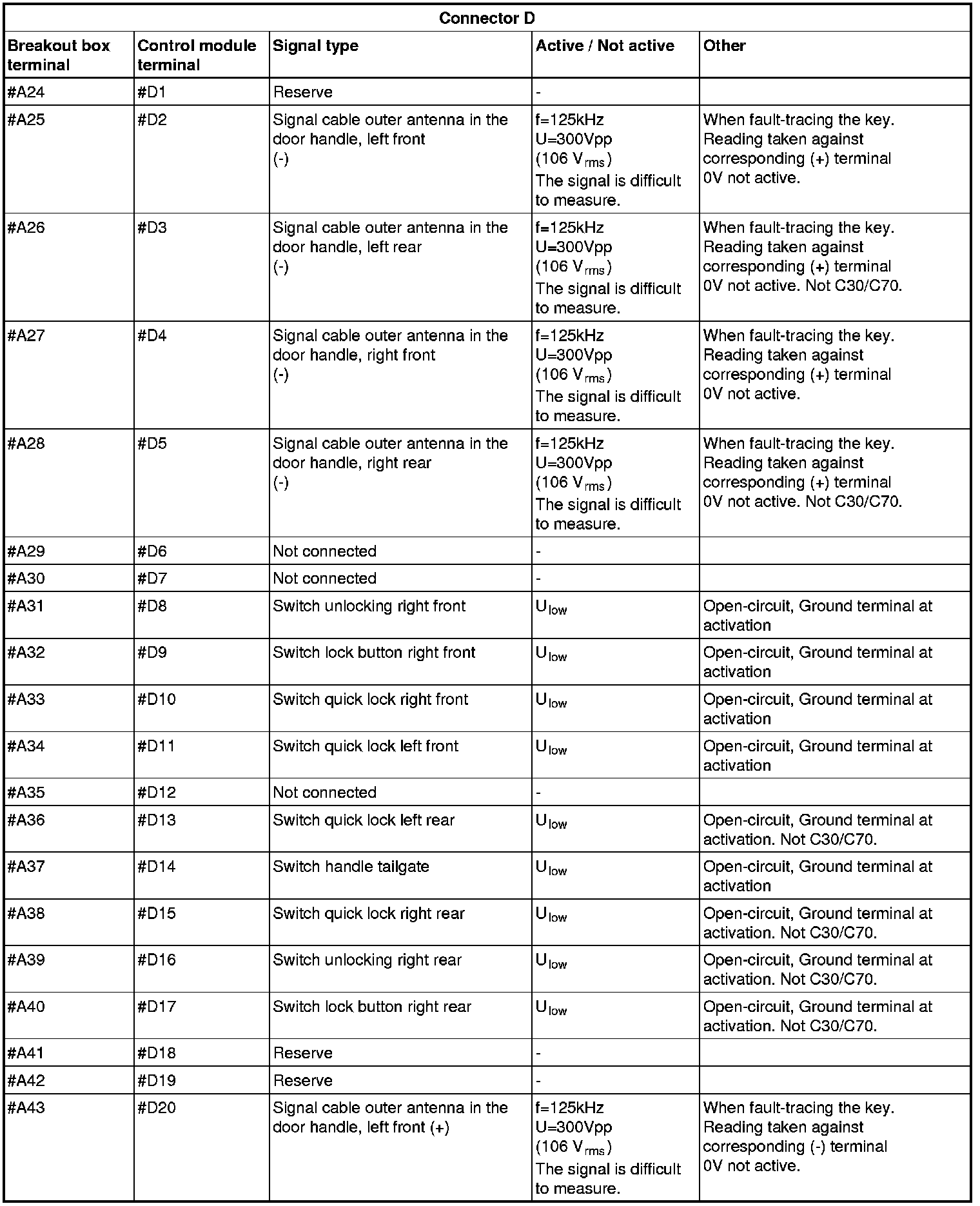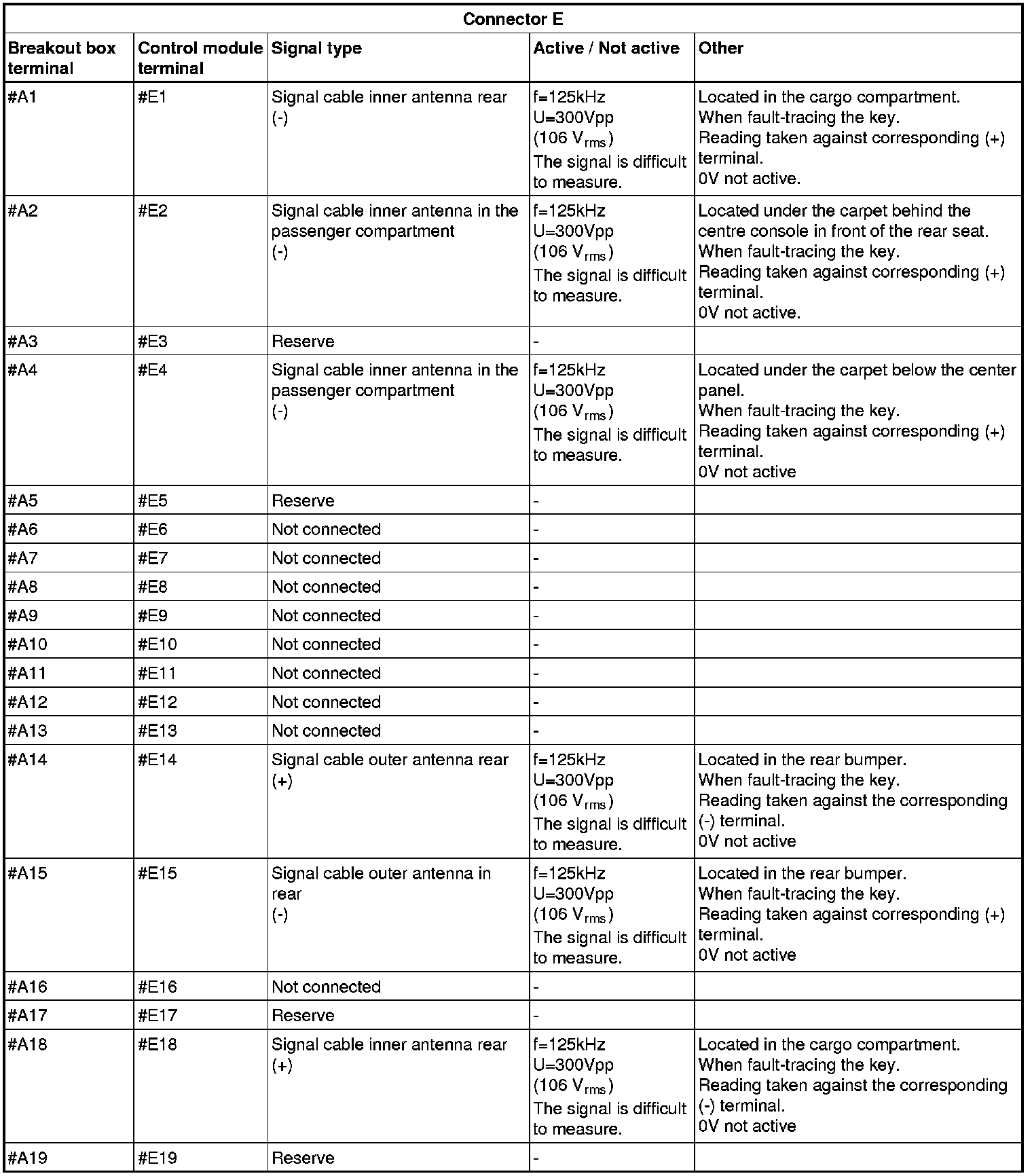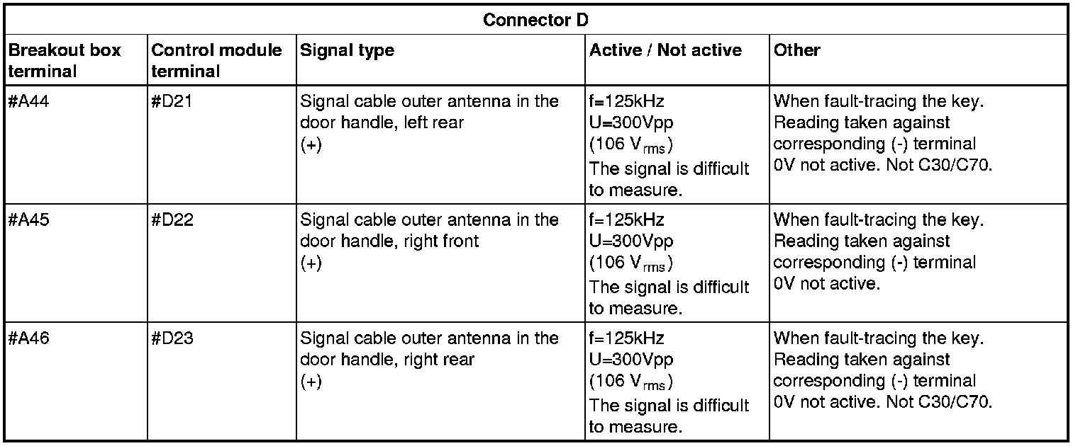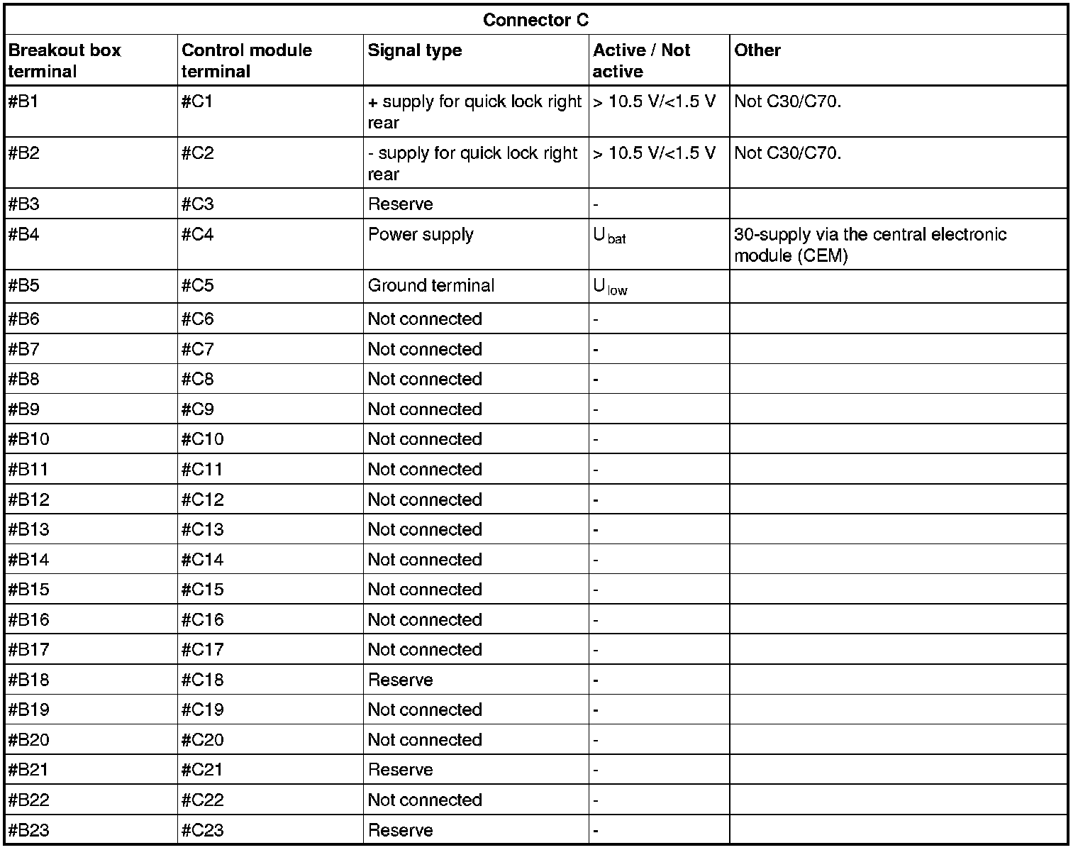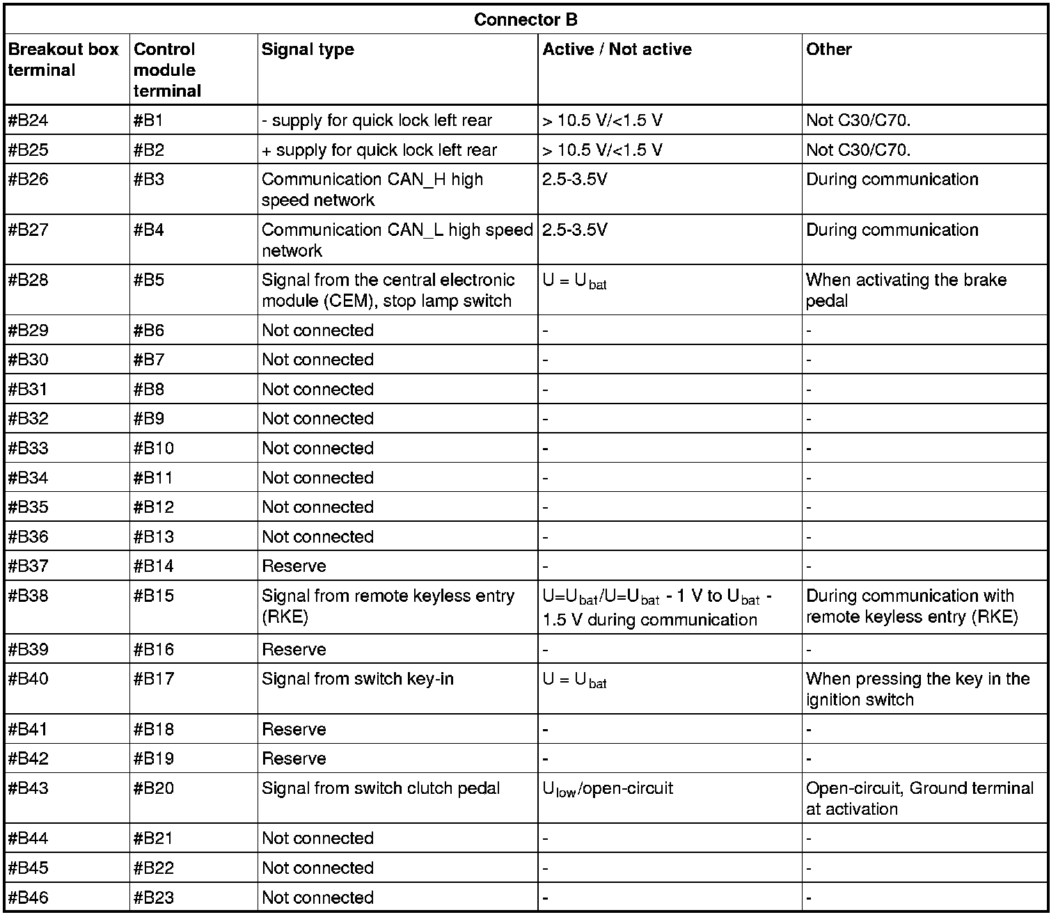 All values given below are between the terminals stated in column 1 and terminal #B5 (power ground). This applies unless otherwise indicated in brackets.