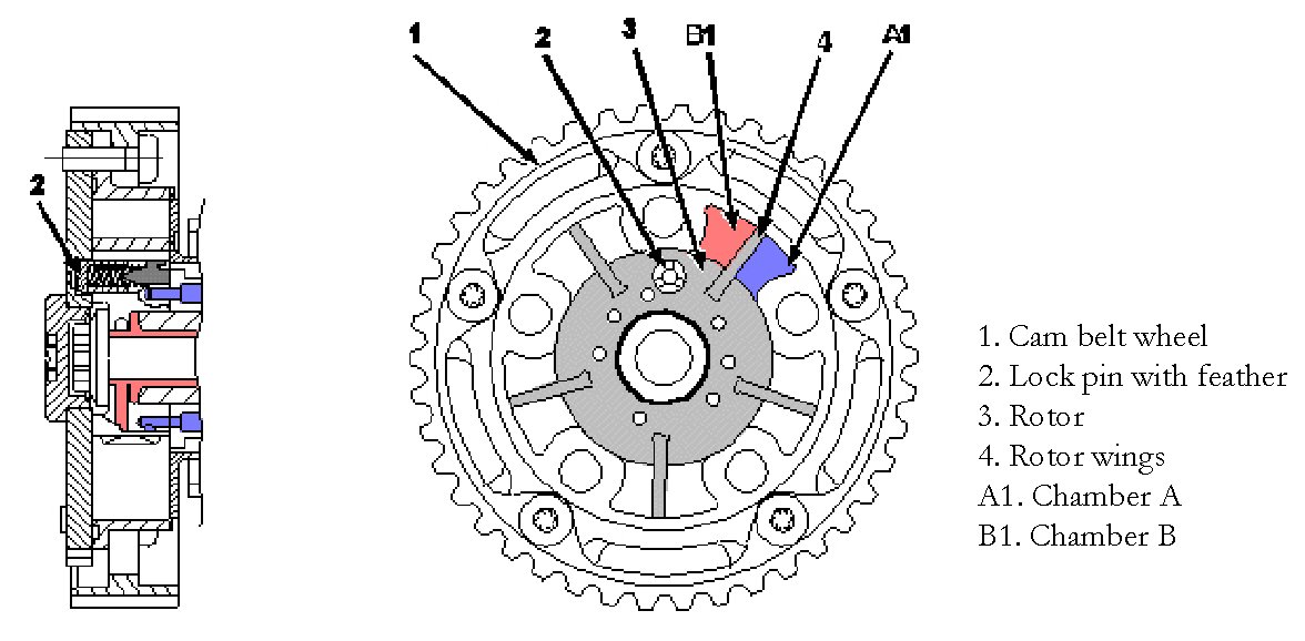 The variable camshaft main task is to minimize exhaust emissions, mainly at cold start, but also gives an improved idling quality.