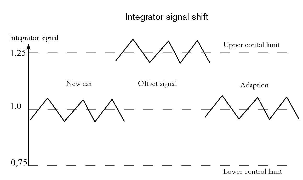 The fuel injection system has a function which compensates for changes in the lambda (lambda) control which occur slowly over its service life. It is called lambda adaptation and its purpose is to keep the integrator signal within its limits of control (see figure below).