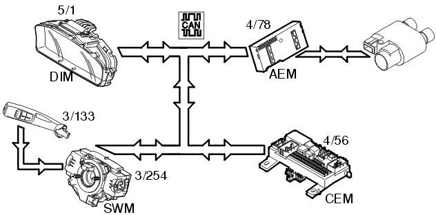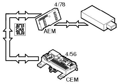 In this case the accessory electronic module (AEM) functions as a port between the Controller area network (CAN) of the vehicle and the after market alarm unit.
