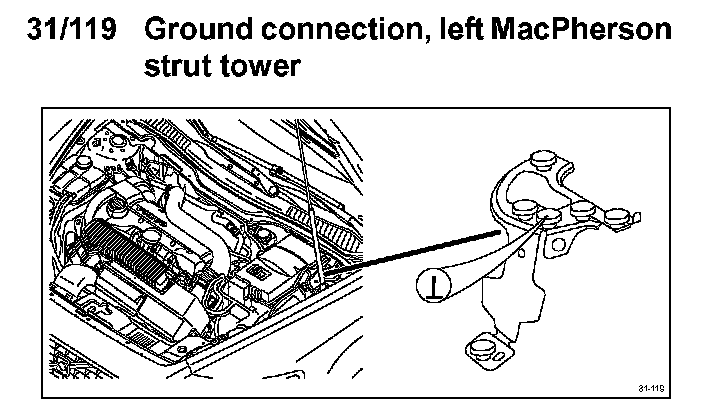 31/119 Ground Connection,Left MacPherson Strut Tower: