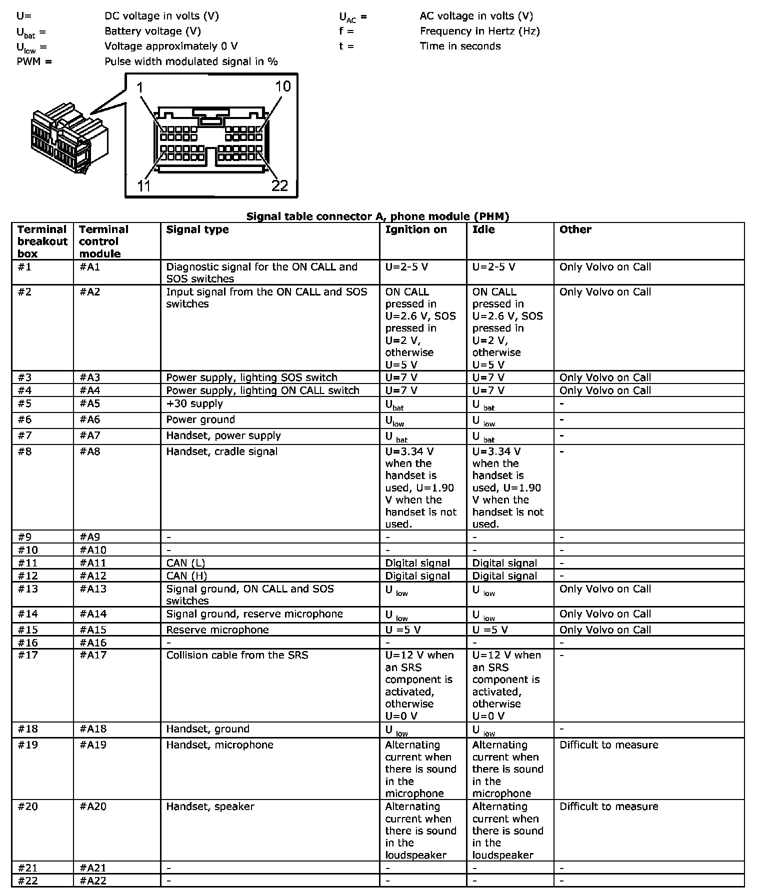 Signal Specification, Phone Module (PHM)