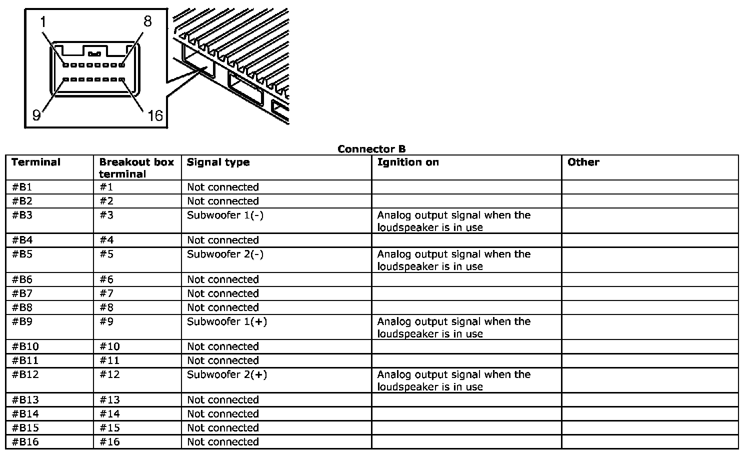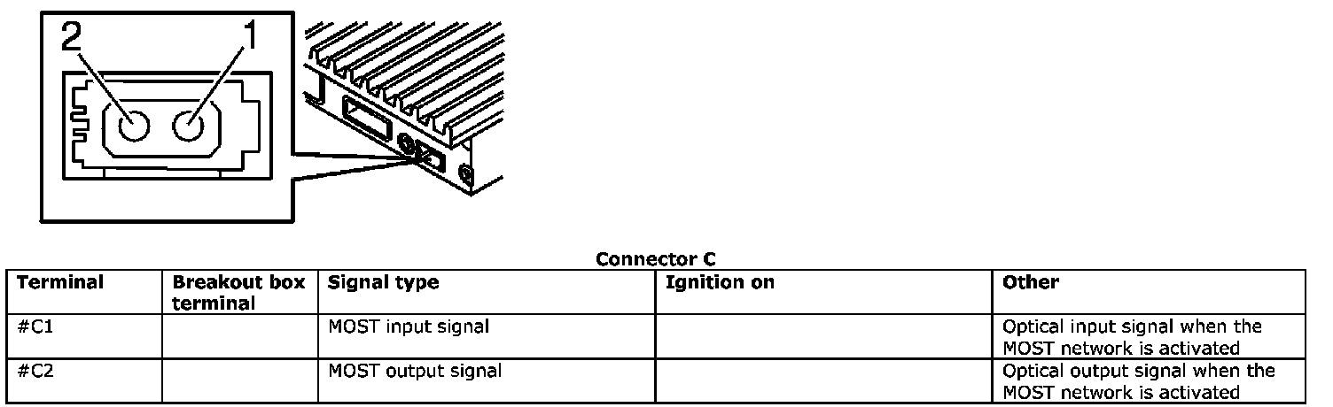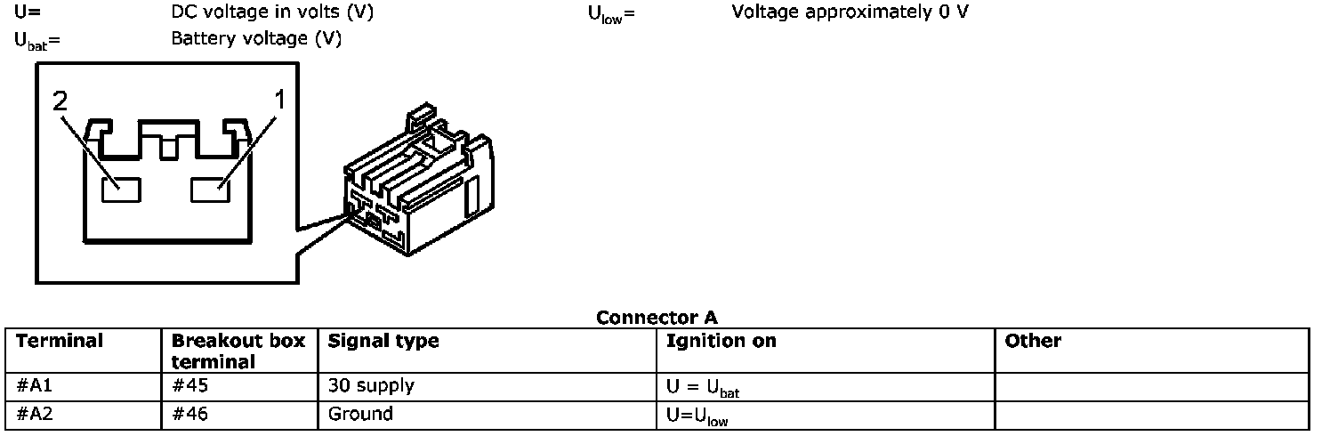 All the values given below are between the respective terminal in column 1 and terminal #A2 in column 2 (power ground) unless otherwise stated in brackets after the table entry.