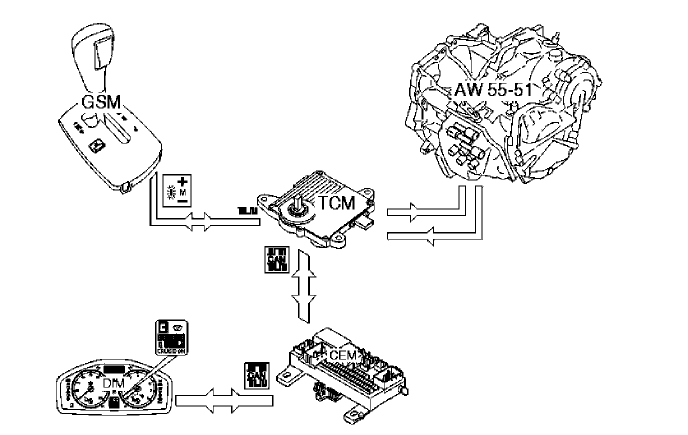 - M: Manual shifting. There are three Hall sensors on the gear selector module (GSM). A permanent magnet on the cover in the gear selector lever affects the output signals of the Hall sensors to the gear selector module (GSM).