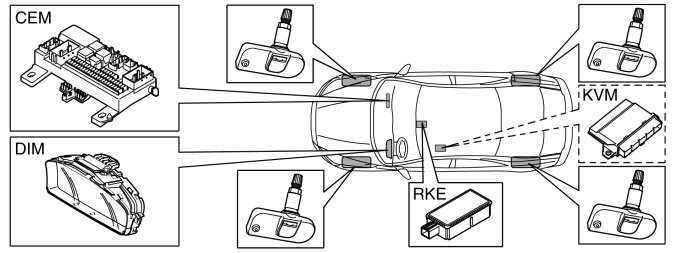 The function is integrated in the central electronic module (CEM). Sensors are installed together with the air valve on each wheel to measure the air pressure in the tires.