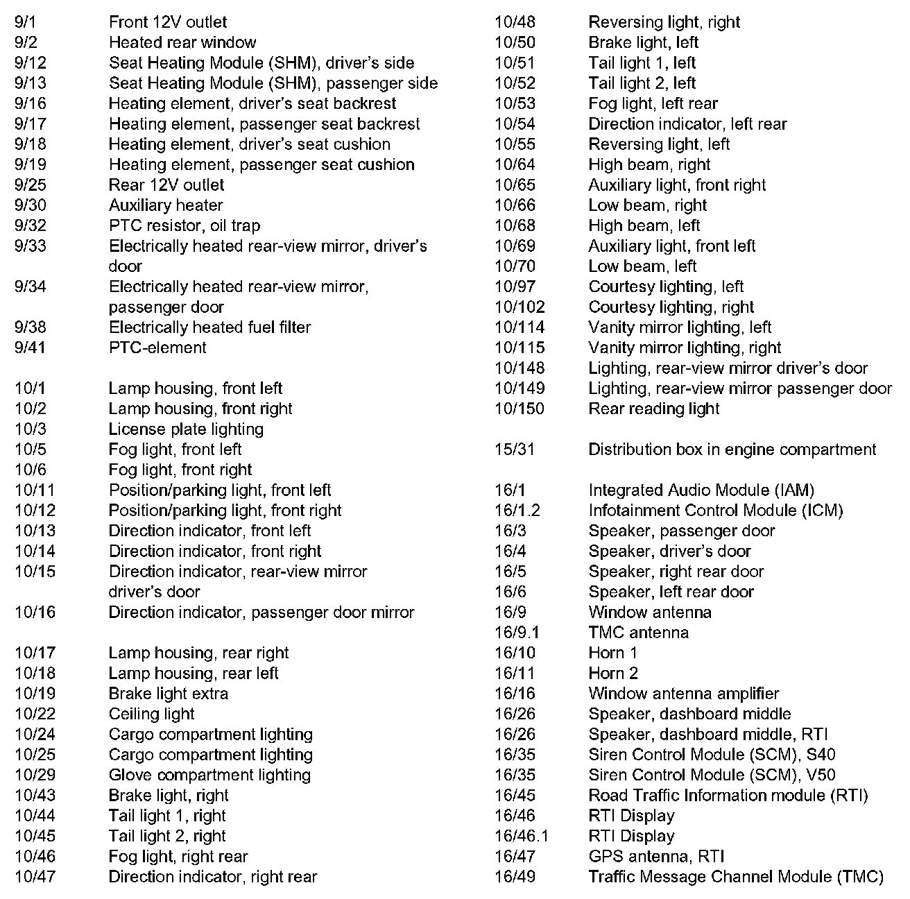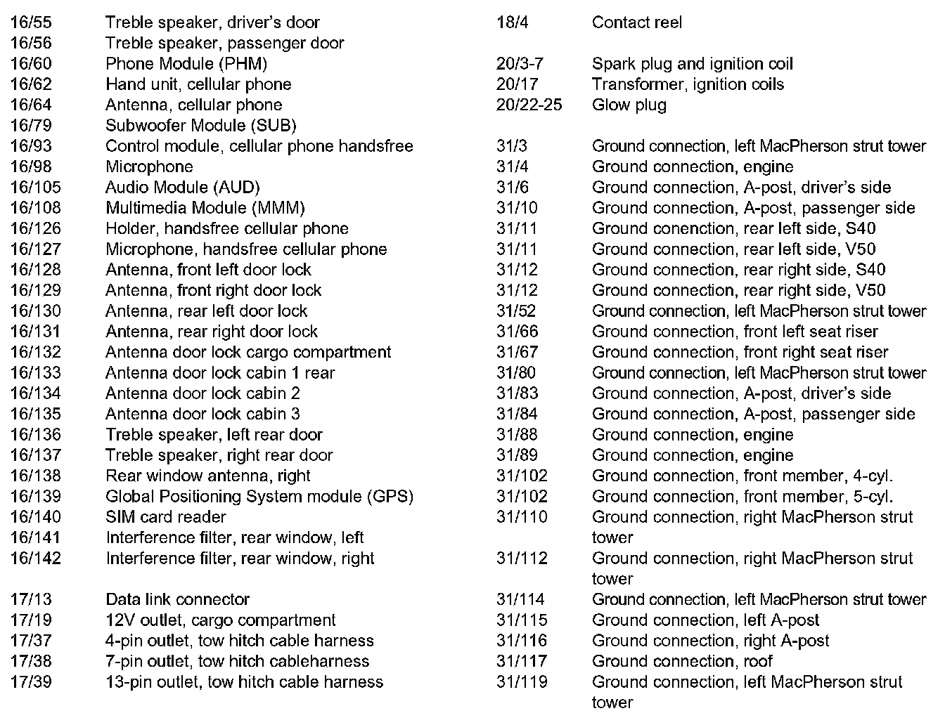 List of Components By Component Number