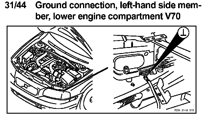 31/44 Ground Connection, Left-hand Side Member, Lower Engine Compartment: