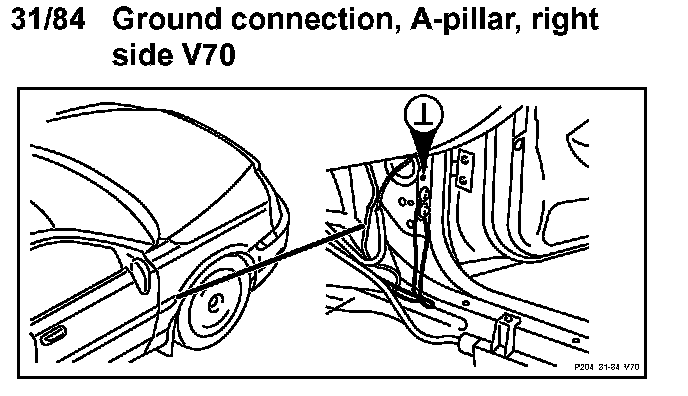 31/84 Ground connection, A-post, right side V70 (2006 Late Version):