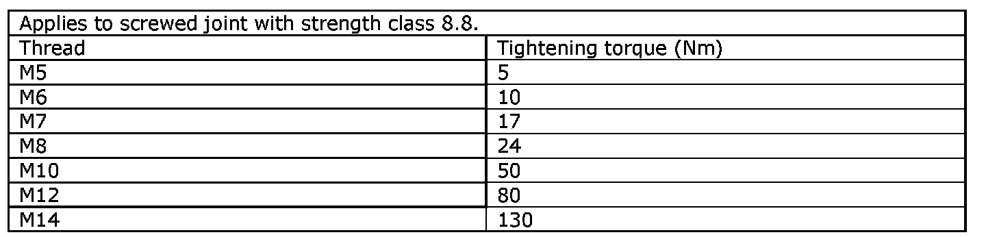 See the table below to find the tightening torques for components not included in the summary.