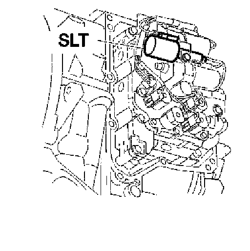 The line pressure solenoid, SLT is in the transmission control system, which is mounted on the front edge of the transmission. The line pressure solenoid, SLT consists of an electric coil which controls a hydraulic valve. The solenoid is controlled by Pulse Width Modulation (PWM) voltage and is grounded via the control module. The solenoid is linear. The hydraulic valve is controlled by the varied current which is the result of the current pulse conditions. During high pulse conditions, (at high currents (approximately 1 A)) the line pressure is low. During low pulse conditions (at low currents) the line pressure is high. The solenoid also engages and disengages neutral control. In the event of an open-circuit the line pressure reaches maximum which causes hard shifting. The hydraulic valve is then completely open.