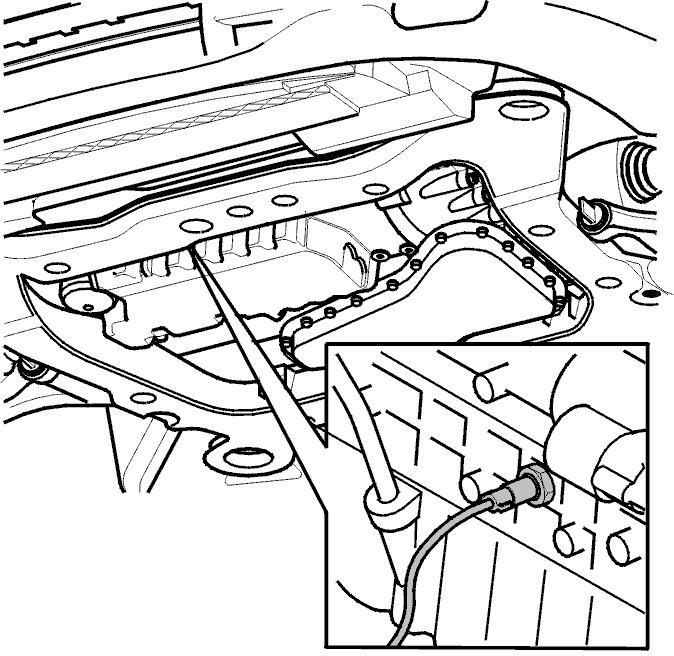 The oil pressure sensor is located on the bottom edge of the engine, to the left of the front engine mounting.