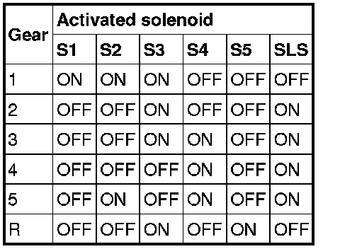 Shifting and the lock-up function is controlled by activating the solenoids in a specific pattern. The solenoids S1-S5 determine which gear is to be used and the SLS, SLU and SLT solenoids determine engagement by adjusting hydraulic line pressure. The basic parameters for the different shifting points are the accelerator pedal (AP) position and the vehicle speed. The shift quality is decided by the control of torque.