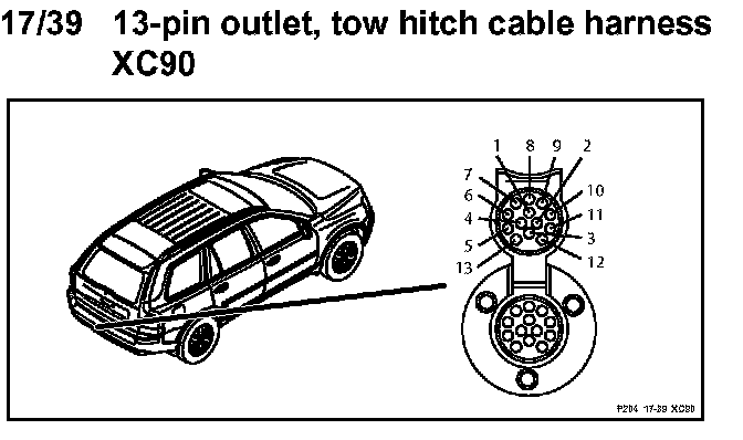 17/39 13-pin Outlet, Tow Hitch Cable Harness: