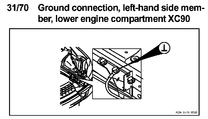 31/70 Ground Connection, Left-hand Side Member, Lower Engine Compartment: