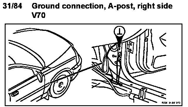 31/84 Ground connection, A-post, right side V70 (2006 Late Version):