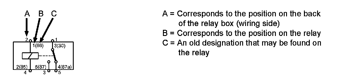 The diagram indicates two or three different designations for the relay's position. This is described above.