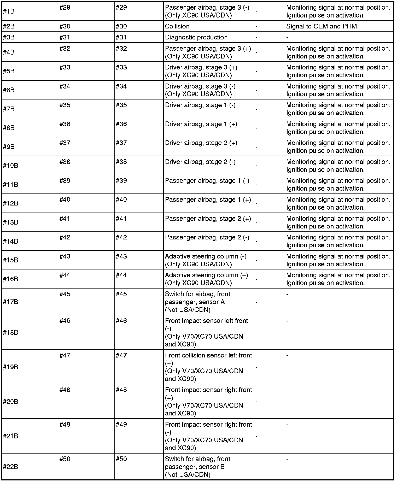 Signal Specification, Supplemental Restraint System Module (SRS)