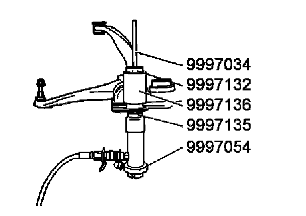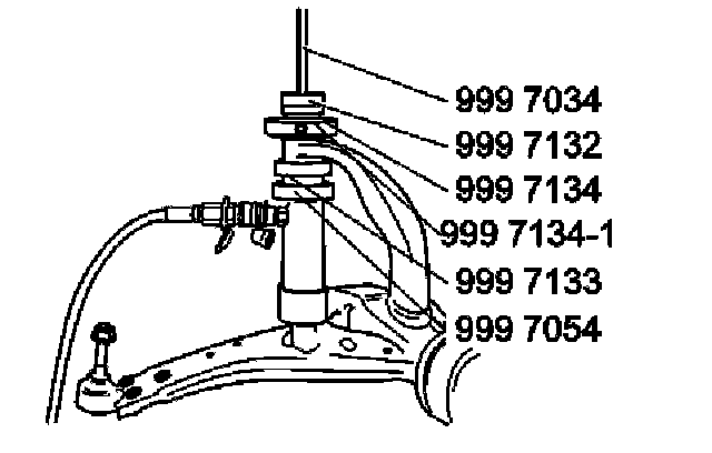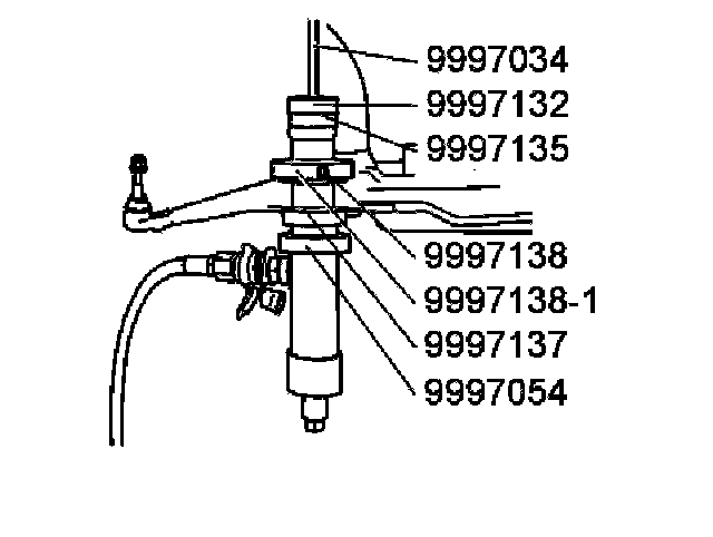 Install the control arm. Use: 999 7054 with: 999 7034, nut: 999 7132, socket: 999 7138, drift: 999 7135 Lock ring: 71381 and ring: 999 7137.