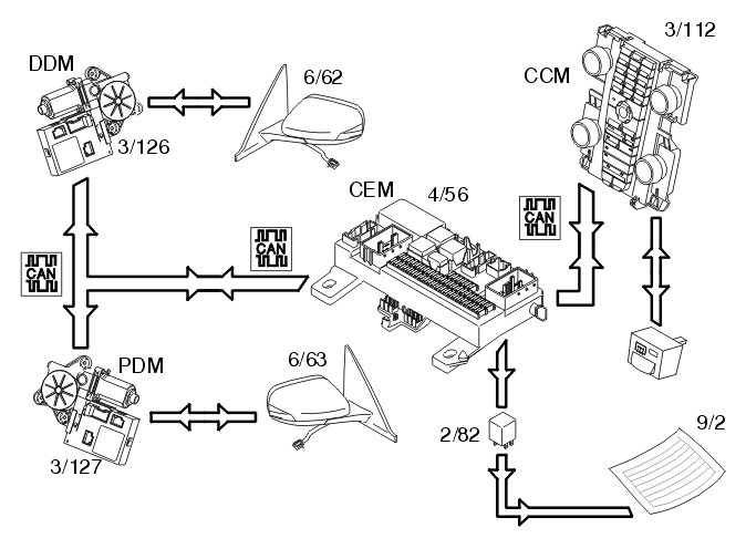For further information, see Design and Function, door control modules (DDM/PDM) and Design and Function, central electronic module (CEM).