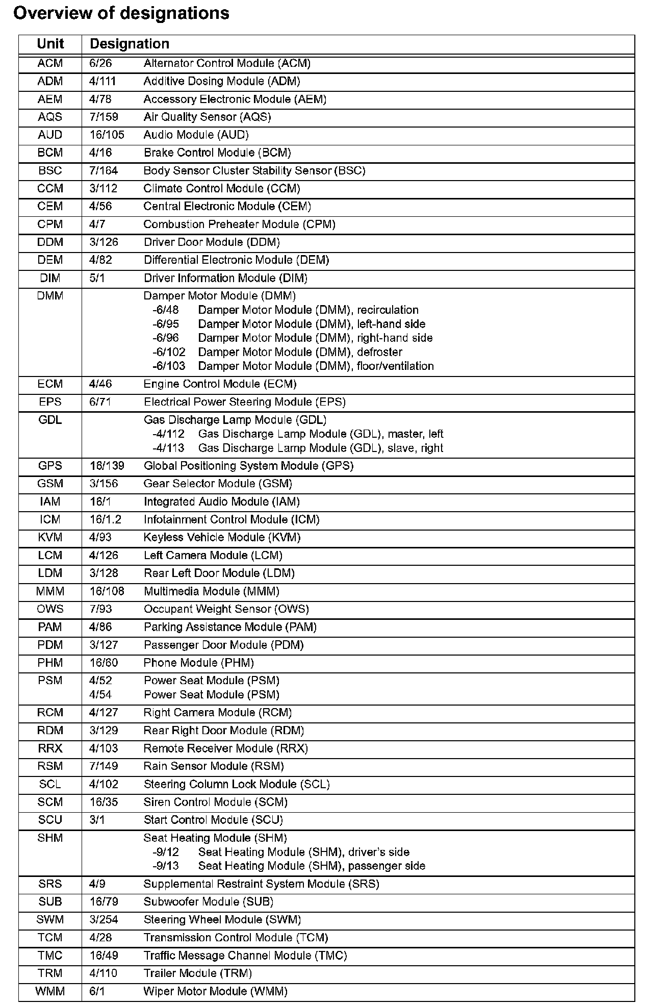 Overview Of Designations: