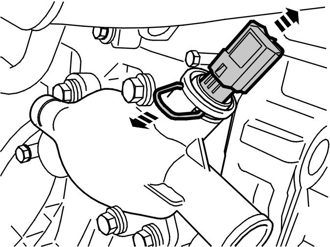 Disconnect the temperature sensor connector. Pull the retaining clip straight out. Pull up the temperature sensor.