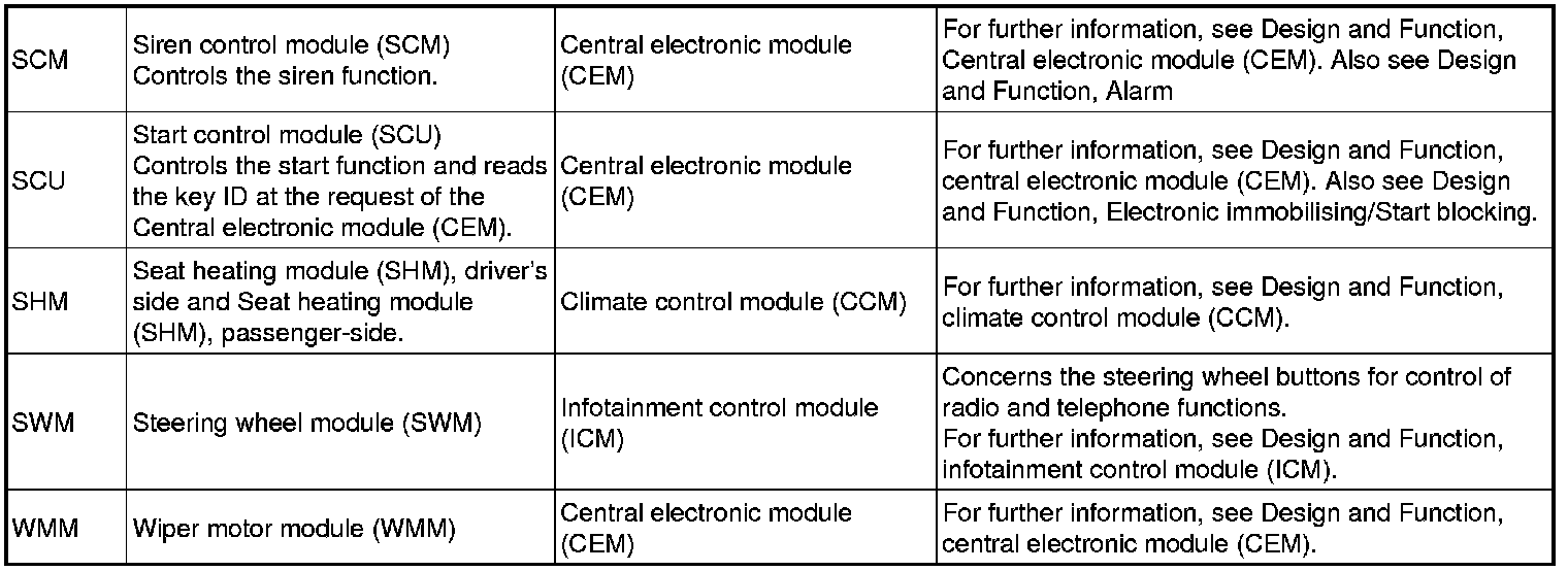Note! The illustration above and the table below is an example that shows model year 2007. All other information in the document is general and applies to all model years.