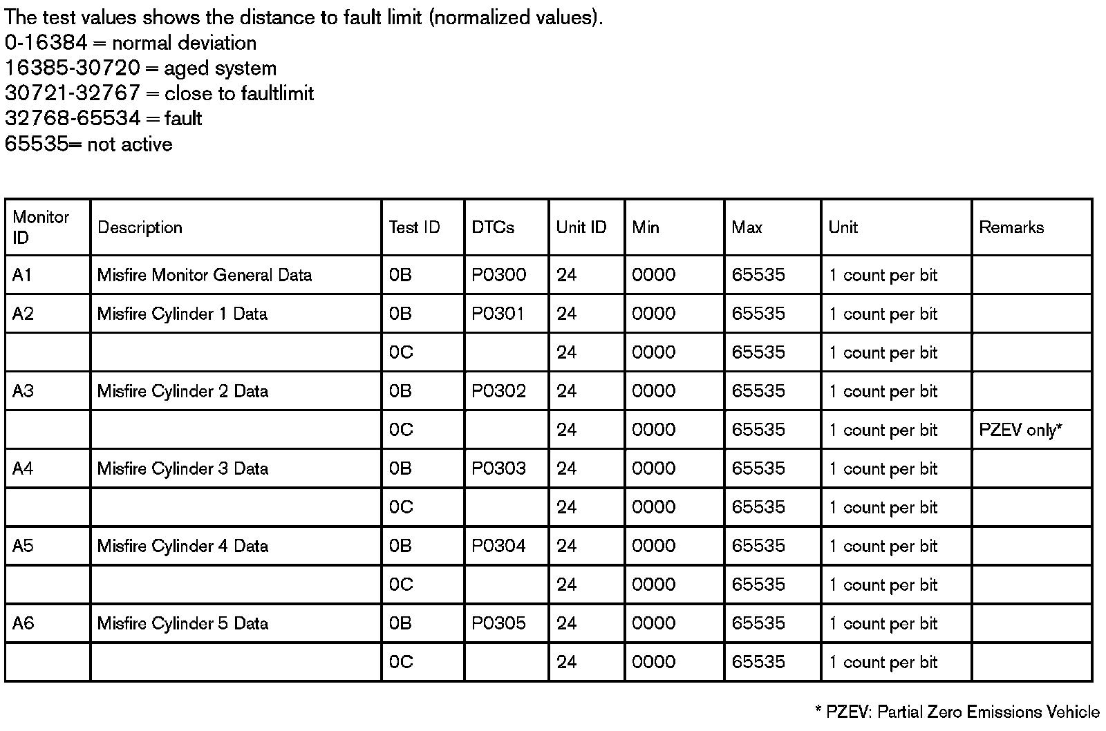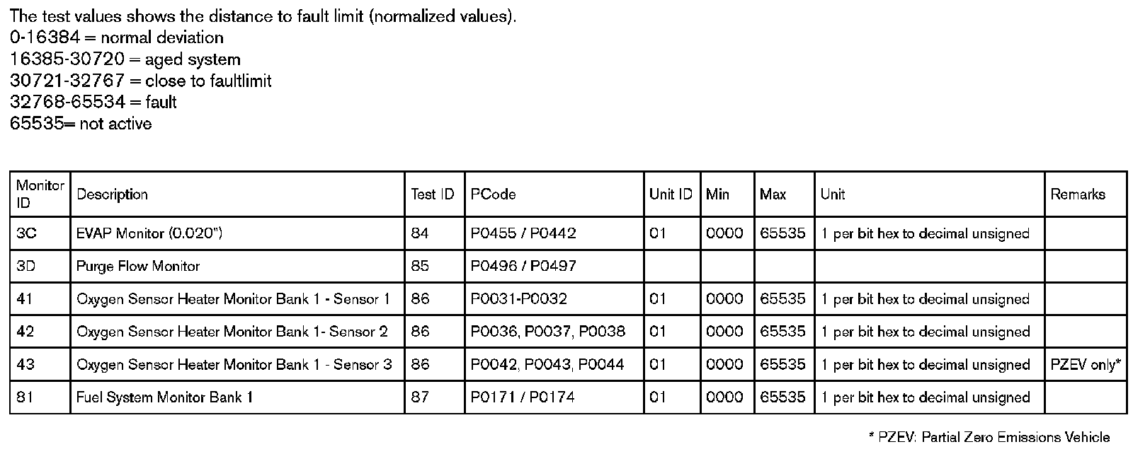If an On-Board Diagnostic Monitor has not been completed at least once since Clear/reset emission-related diagnostic information or battery disconnect, then the parameters Test Value (Results), Minimum Test Limit, and Maximum Test Limit shall be set to zero $00) values.