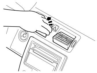 - Press out the display module (1) from the reverse of the centre console. Use both hands and press straight back.