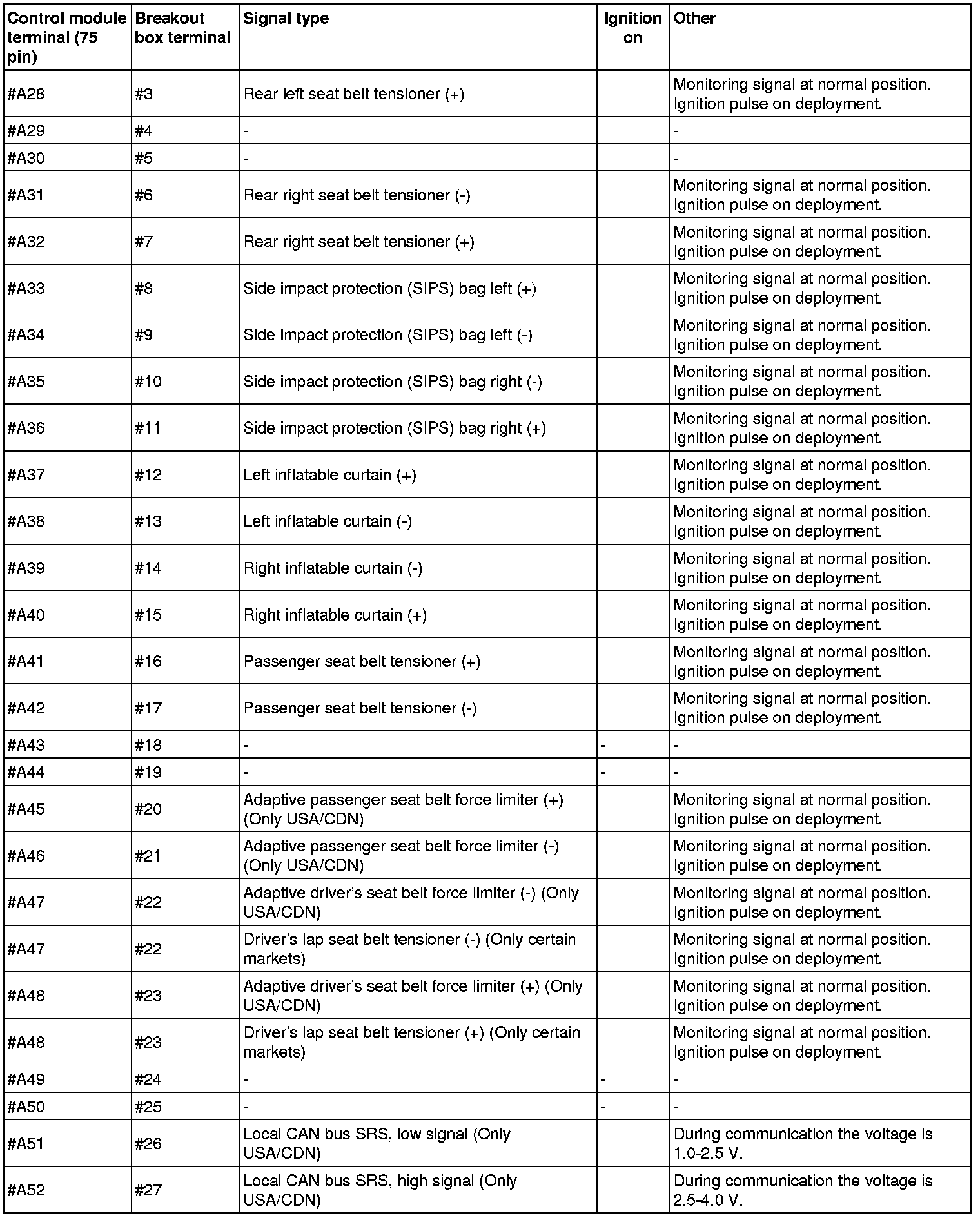Signal Specification, Supplemental Restraint System Module (SRS)