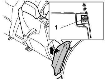 - Remove the seat belts from the guides (1).