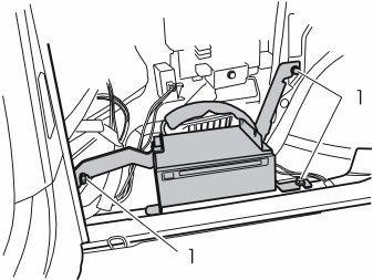 - Install the bracket with the DVD reader in the rear edge of the rear wheel well using three screws (1) from the kit. Tighten the screws. Tighten to 10 Nm (7 lbf ft)