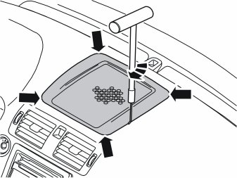 - Pull upwards until the loudspeaker grille detaches. The loudspeaker grille is securely fastened by four clips. Move the tool closer to the clip to facilitate removal.