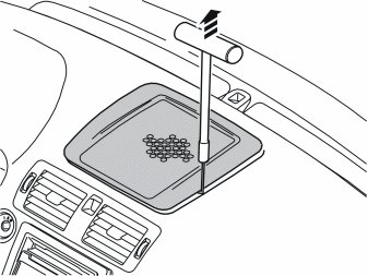 - Twist the tool 90° so that the bent section engages with the underneath of the loudspeaker grille.