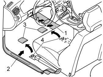 - Push the floor carpet to one side so that the air ducts (1) are accessible.
